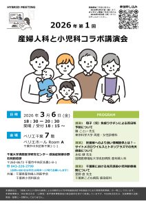 ★第1 回 産婦人科と小児科コラボ講演会のお知らせ 2026年2月10日お知らせ 千葉県産科婦人科医学会では、産婦人科医師と小児科医師との連携を行うことを目的に この度、千葉県小児科医会との共催で講演会を下記の通り開催することとなりましたので、 お知らせ申し上げます。 前ページへ戻る