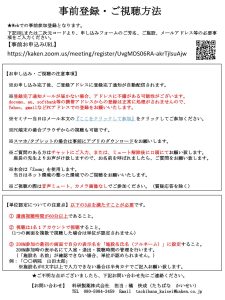 | 備考 | <事前登録URL> https://kaken.zoom.us/meeting/register/UvgMDS06RA-akrTjlsuAjw |